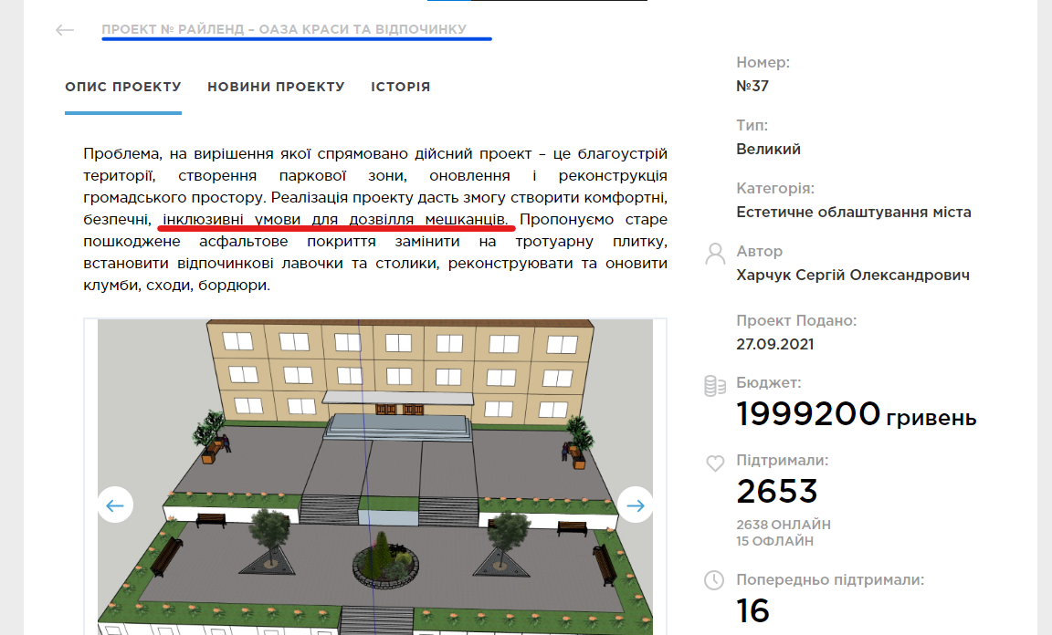 “Реалізація проекту дасть змогу створити комфортні, безпечні, інклюзивні умови для дозвілля мешканців.“